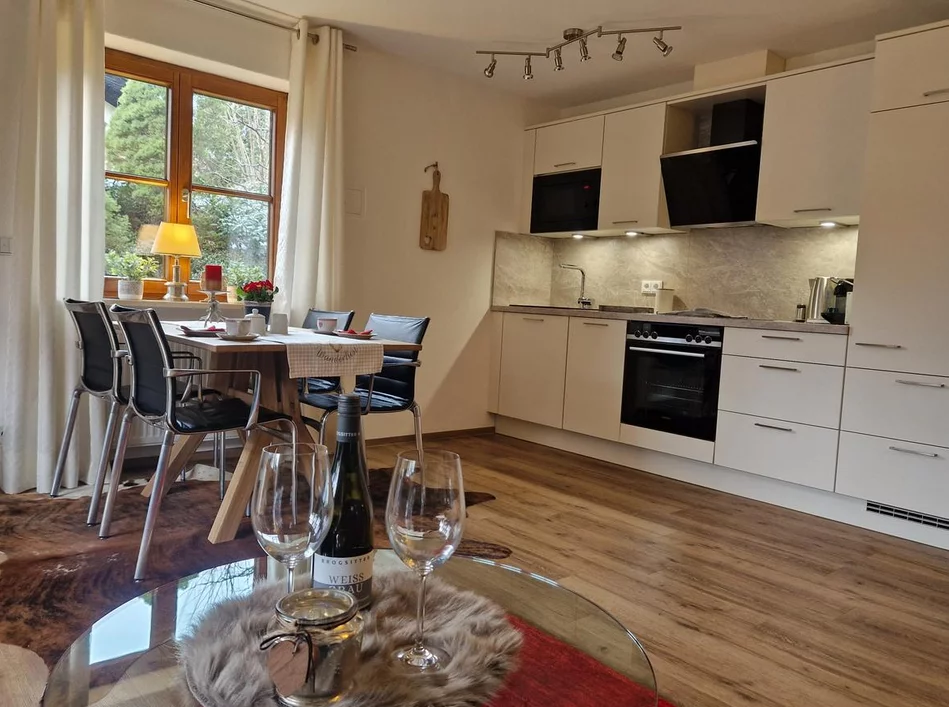 Tauchen Sie ein in die Welt unserer Ferienwohnung Alpenherz: Moderne Gemütlichkeit trifft auf atemberaubende Alpenpanoramen. Von der voll eingerichteten Küche über das einladende Schlafzimmer bis zum neuen, luxuriösen Bad – jedes Detail lädt zum Genießen ein.